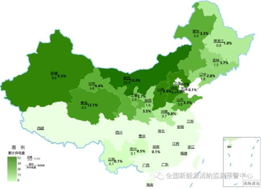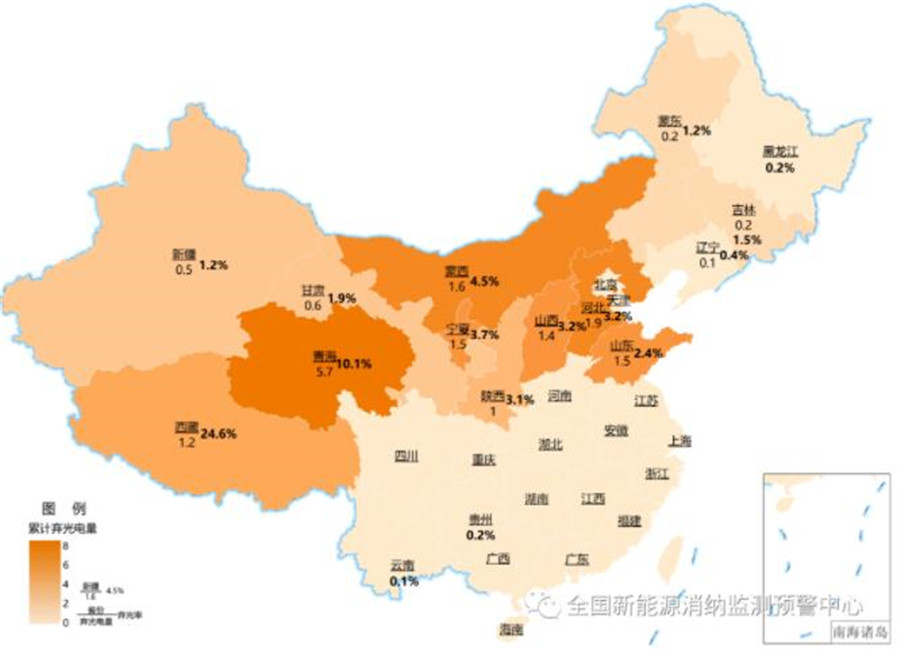 截至3月底各地區(qū)累計(jì)棄光電量(億千瓦時(shí))及棄光率