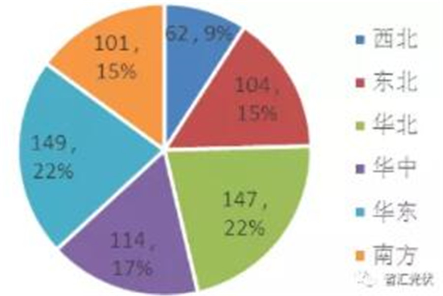 從區(qū)域分布來(lái)看,中東部和南方地區(qū)新增風(fēng)電并網(wǎng)363萬(wàn)kW,占全國(guó)的53.6%。各區(qū)域一季度新增裝機(jī)如下圖所示。