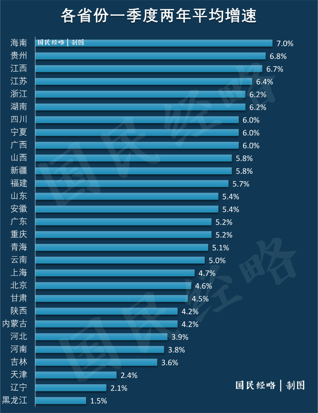 海南(7%)、貴州(6.8%)、江西(6.7%)、江蘇(6.4%)、浙江(6.2%)和湖南(6.2%)。