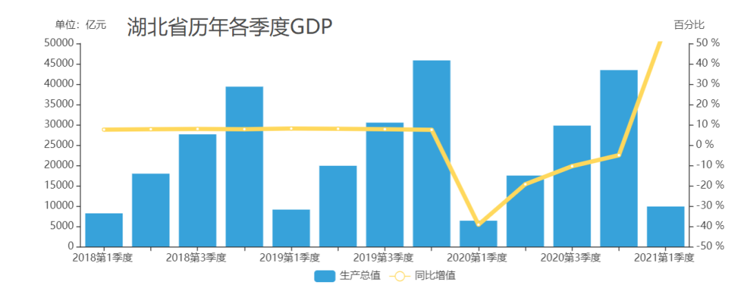 2021年一季度湖北GDP同比增長58.3%,一扭去年疫情沖擊經(jīng)濟(jì)停擺的頹勢(shì),體現(xiàn)出非同一般的復(fù)蘇效應(yīng)。