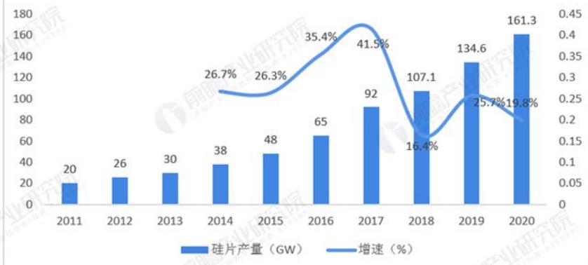 圖2 2011-2020年我國硅片產量及增速