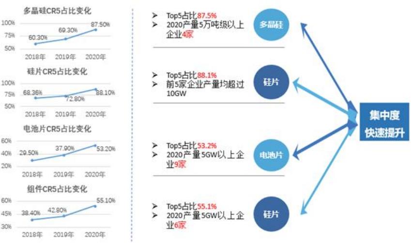 圖3 光伏產業(yè)鏈各環(huán)節(jié)市場集中度