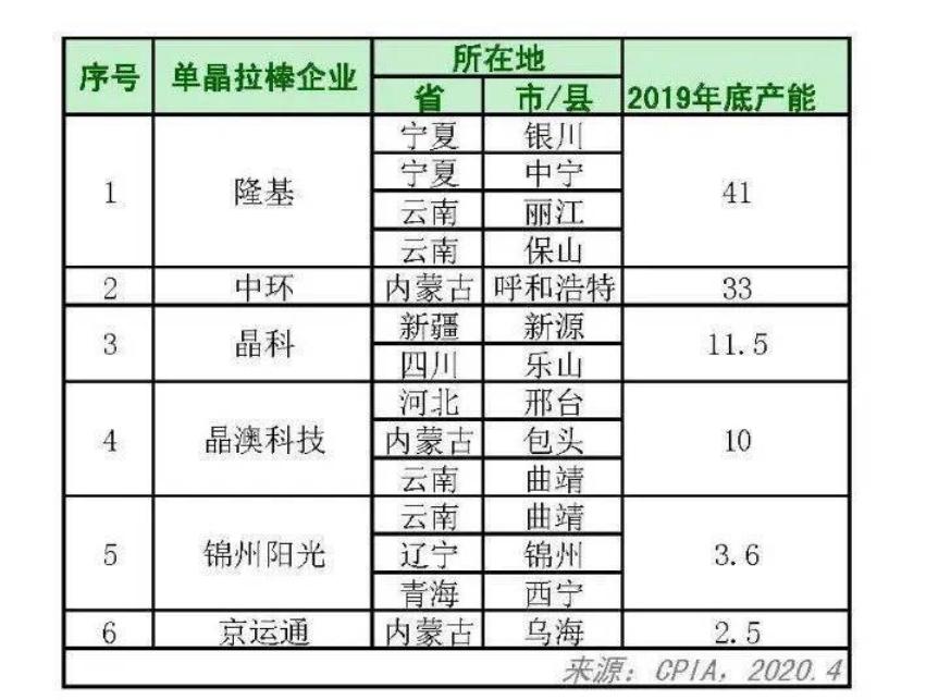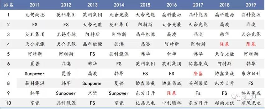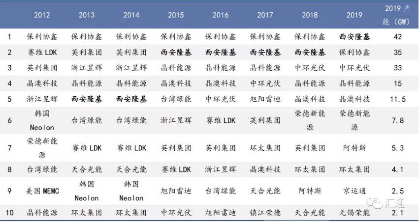 表2 歷年硅片企業(yè)排名