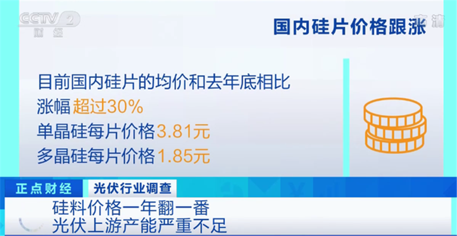 不足一家四川的硅料生產(chǎn)企業(yè),作為光伏行業(yè)中最上游的原材料生產(chǎn)企業(yè),它的市場份額占到國內(nèi)最大。企業(yè)負(fù)責(zé)人告訴記者,今年硅料價格一路上漲,當(dāng)前的價格同比去年已經(jīng)翻了一倍,比去年底更是上漲了近50%。如今單晶用料均價達(dá)到每公斤135元,多晶硅為每公斤74元。