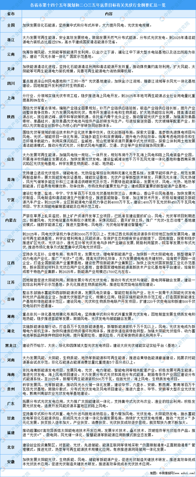 全國各省市十四五規(guī)劃中光伏產(chǎn)業(yè)相關發(fā)展建議