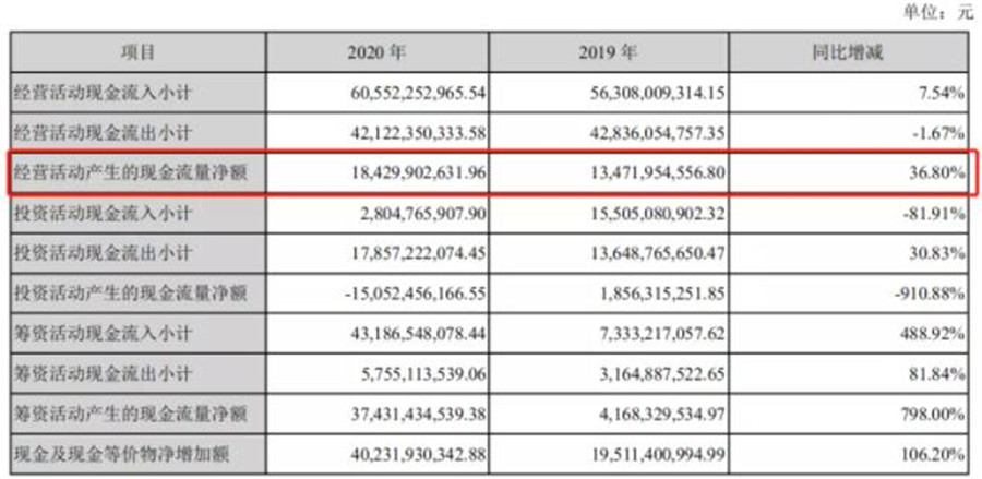 不過,寧德時(shí)代現(xiàn)金流非常充裕。2020年,寧德時(shí)代經(jīng)營性現(xiàn)金流為184.30 億元,同比增長36.8%,為凈利潤的3.02 倍,其中2020第四季度經(jīng)營性現(xiàn)金流為 81.24 億元,同比增長158.1%,環(huán)比增長81%;報(bào)告給出的原因是,主要是產(chǎn)品銷售情況良好,部分客戶支付預(yù)付款。