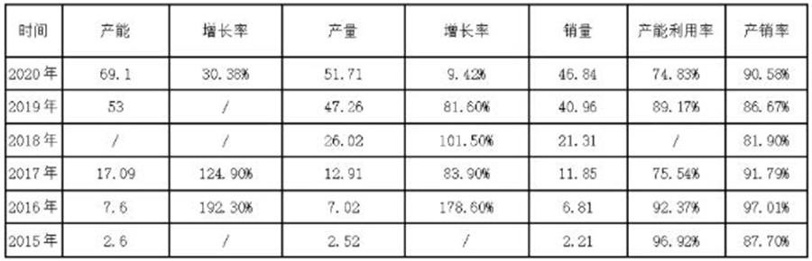 近年來,寧德時(shí)代產(chǎn)能增長非常迅速,2015年產(chǎn)能僅為2.6GWh,到2020年,這一數(shù)據(jù)增長到69.1GWh,不過產(chǎn)能利用率由90%下降至74.83%,應(yīng)該是受疫情影響。