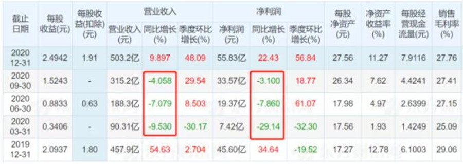 2020年受疫情影響,寧德時(shí)代前三季度的營業(yè)收入同比下滑明顯,凈利潤也處于同比負(fù)增長。