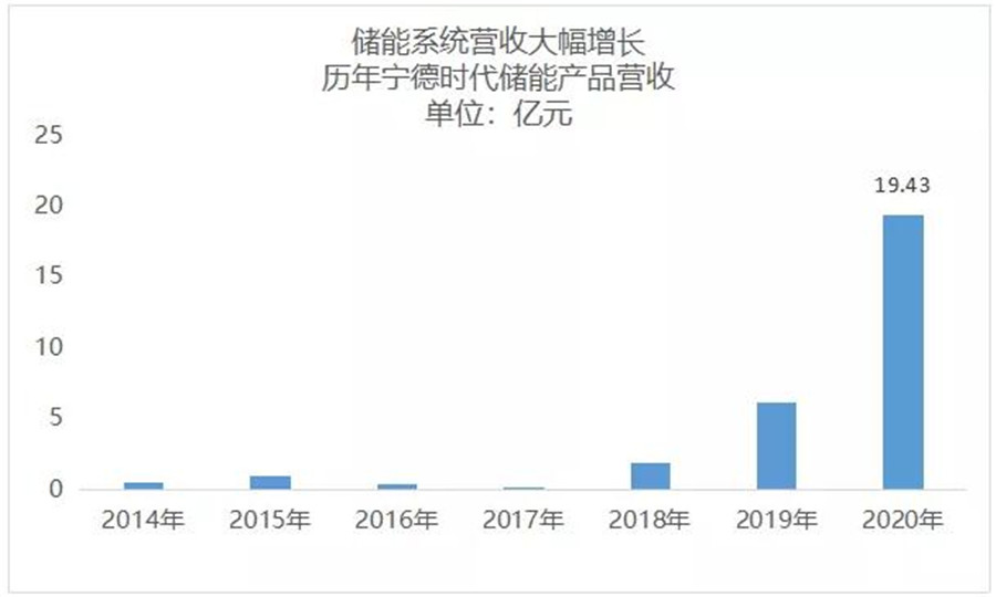 隨著前期儲(chǔ)能市場(chǎng)布局逐步落地,寧德時(shí)代去年全年實(shí)現(xiàn)儲(chǔ)能系統(tǒng)銷售收入為19.43億元,同比增長218.56%。