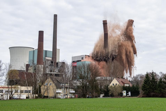 德國(guó)Lünen,原來(lái)的斯蒂格電廠250米高的煙囪倒塌