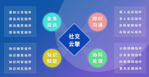 遠(yuǎn)光社交云擎套件,含即時溝通、知識賦能、業(yè)務(wù)資訊、協(xié)同處理四大云擎組件,所有組件能夠與企業(yè)各類業(yè)務(wù)系統(tǒng)深度融合,以人為核心,以高效協(xié)同為根本,改變企業(yè)及組織傳統(tǒng)的互動與信息共享方式,破解業(yè)務(wù)協(xié)同互聯(lián)等難題,實現(xiàn)管理系統(tǒng)融合創(chuàng)新,助力管理快速社交化、智能化升級。