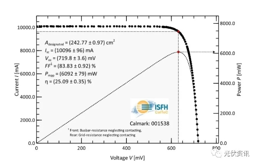 日前,經(jīng)德國(guó)Institutfür Solarenergieforschung in Hameln ( ISFH )研究所測(cè)試,隆基電池研發(fā)中心單晶雙面N型TOPCon電池轉(zhuǎn)換效率達(dá)25.09%,基于單晶硅片商業(yè)化尺寸TOPCon電池效率首次突破25%,再次成為新世界紀(jì)錄的創(chuàng)造者。