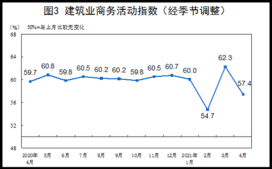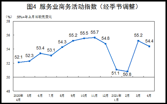 4月份,非制造業(yè)商務(wù)活動(dòng)指數(shù)為54.9%,較上月回落1.4個(gè)百分點(diǎn),非制造業(yè)擴(kuò)張步伐有所放緩。