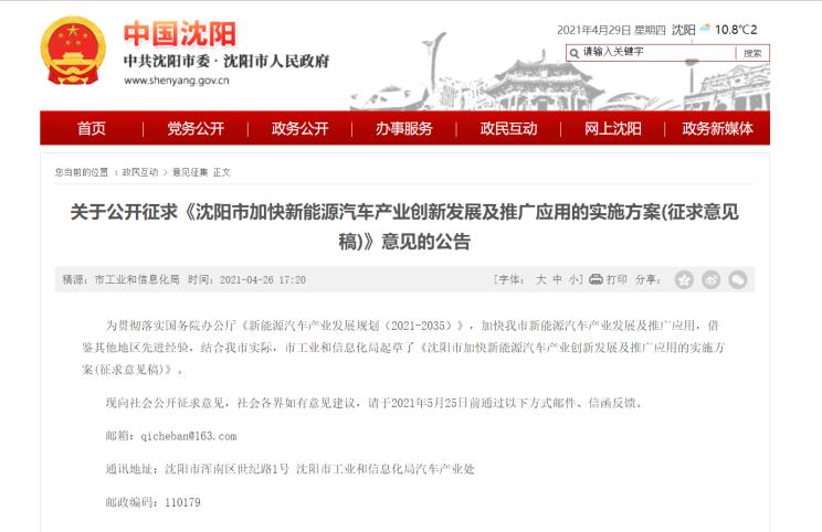 日前,我們從沈陽市人民政府官網(wǎng)獲悉,沈陽市工業(yè)和信息化局起草了《沈陽市加快新能源汽車產(chǎn)業(yè)創(chuàng)新發(fā)展及推廣應用的實施方案(征求意見稿)》。原文如下: