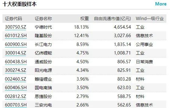 Wind數(shù)據(jù)顯示,光伏設(shè)備、儲(chǔ)能設(shè)備、水電等行業(yè)的權(quán)重占比較高,依次為29.8%、23%、11%,是未來(lái)我國(guó)新能源重點(diǎn)發(fā)展的領(lǐng)域,受到“碳中和”政策的催化。從成分股來(lái)看,中證內(nèi)地低碳經(jīng)濟(jì)主題指數(shù)所篩選的成分股為低碳主題龍頭,寧德時(shí)代和隆基股份權(quán)重最大的兩家公司。