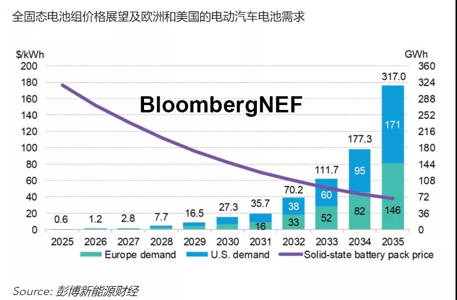 彭博新能源財(cái)經(jīng)預(yù)計(jì),歐洲和美國將在2025年迎來首批采用固態(tài)電池的限量版汽車