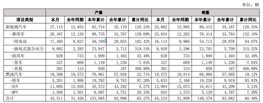 根據(jù)2021年4月份比亞迪的產(chǎn)銷情況來(lái)看,新能源汽車產(chǎn)量累計(jì)同比達(dá)到135.24%,銷量累計(jì)同比高達(dá)128.53%。乘用車產(chǎn)量累計(jì)同比達(dá)到了139.09% ,銷量累計(jì)同比高達(dá)132.10%。插電式混合動(dòng)力車產(chǎn)量累計(jì)同比高達(dá)319.24%,銷量累計(jì)同比達(dá)到了315.22%,并且其他類型車輛的產(chǎn)銷量大多均有顯著提升。