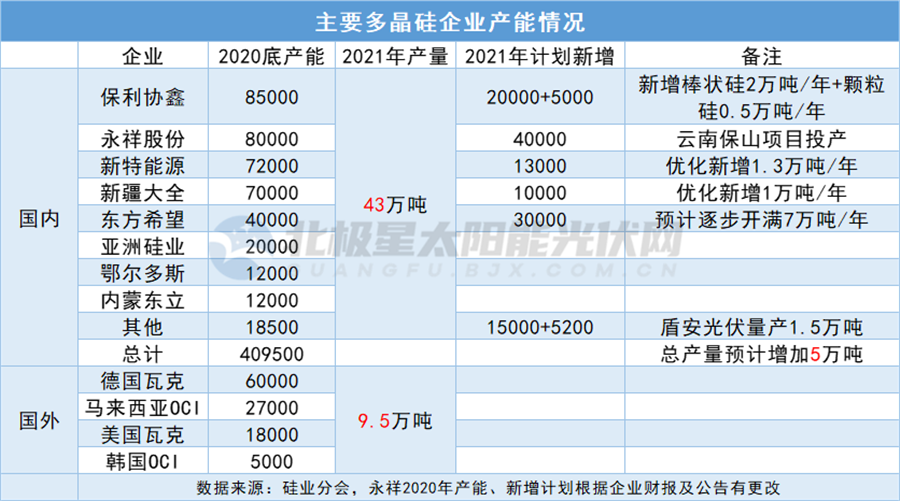 多晶硅產(chǎn)能情況