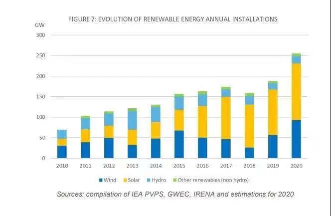 光伏將在能源轉(zhuǎn)型中發(fā)揮關(guān)鍵作用。在過去15年里,由于技術(shù)的發(fā)展和價(jià)格的下降,光伏市場不斷增長,逐步成為一種主流發(fā)電方式。2020年,光伏約占所有新增可再生能源總發(fā)電量的42%。