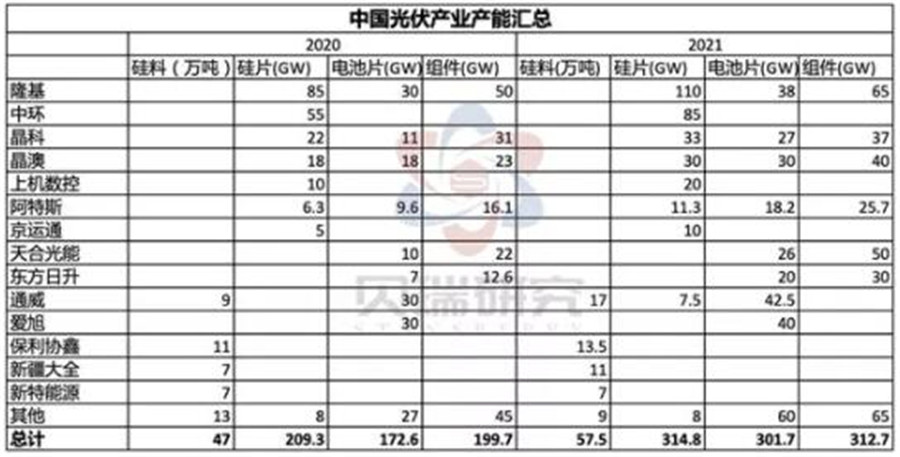 據世紀新能源網不完全統(tǒng)計,在2020年硅片擴產規(guī)模超300GW,新增產能將在2021年下半年至2023年陸續(xù)投產。2021年硅片產能在300GW左右。單純從數(shù)字層面分析,多晶硅產能在2021年的確絕對過剩。