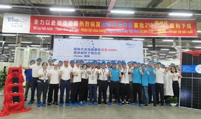 越南當地時間2021年5月15日11點整,天合光能海外制造基地越南太原工廠首批210電池及組件下線。這標志著天合光能210組件海外產能全面展開,超高功率210至尊系列組件加速全球出貨,進一步滿足全球市場需求。這也意味著天合光能成為具備海外超高功率組件產能的首家光伏企業(yè)。
