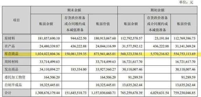 2020年末,存貨中的庫(kù)存商品(產(chǎn)成品)從上年同期的5.6億增長(zhǎng)到10.2億,同比大增92%,公司為此還計(jì)提了1.5億的存貨價(jià)跌準(zhǔn)備。