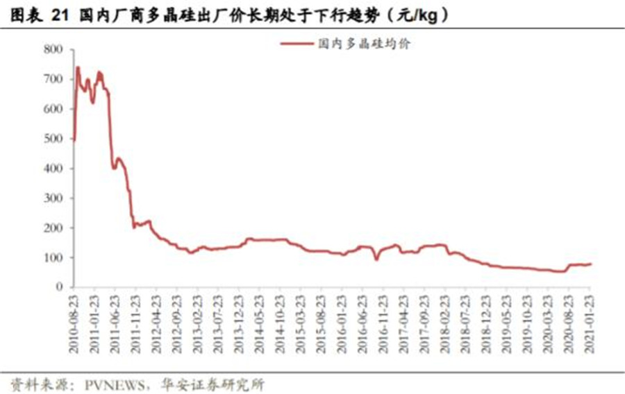 短短幾個(gè)月時(shí)間,多晶硅價(jià)格已上漲約110元/kg,且仍呈持續(xù)上漲趨勢(shì)。最高價(jià)已超200元/kg,這意味著多晶硅價(jià)格已經(jīng)回到10年前的高位。