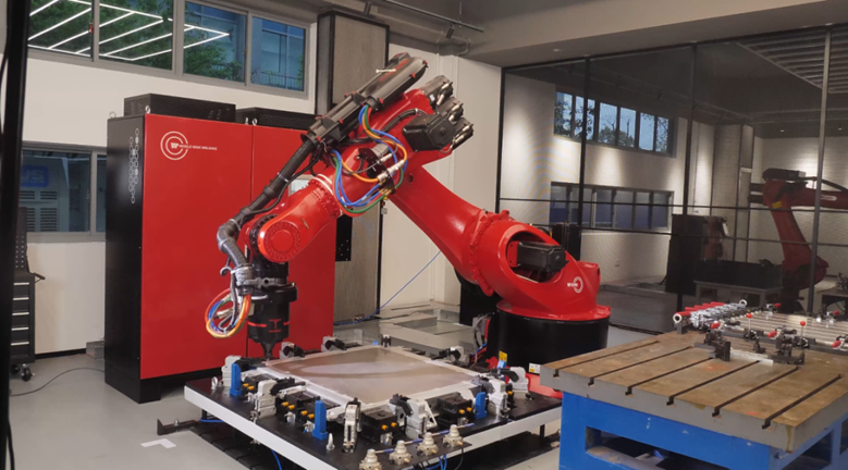萬洲焊接本次推出的全新一代H系攪拌摩擦焊機(jī)器人工作站,搭配重載六軸柔性機(jī)器人和高轉(zhuǎn)速焊接主軸,采用恒壓力靜止軸肩攪拌摩擦焊技術(shù),可提供更大主軸扭矩、更高主軸轉(zhuǎn)速,多工位柔性化焊接,更好地滿足客戶特種焊接需求。同時(shí),為了快速及時(shí)響應(yīng)客戶,萬洲焊接優(yōu)化和縮短了供應(yīng)鏈,產(chǎn)品交付周期較以往縮短50%,并提供24*7的售后服務(wù),讓客戶無后顧之憂。