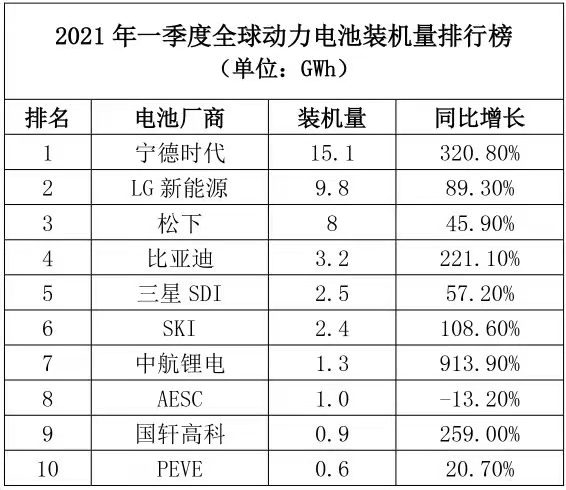 根據(jù)韓國(guó)SNE Research行業(yè)調(diào)研機(jī)構(gòu)發(fā)布的數(shù)據(jù),今年一季度,全球動(dòng)力電池裝機(jī)量達(dá)到47.8Gwh,同比增長(zhǎng)127%,呈現(xiàn)出高速增長(zhǎng)的態(tài)勢(shì)。
