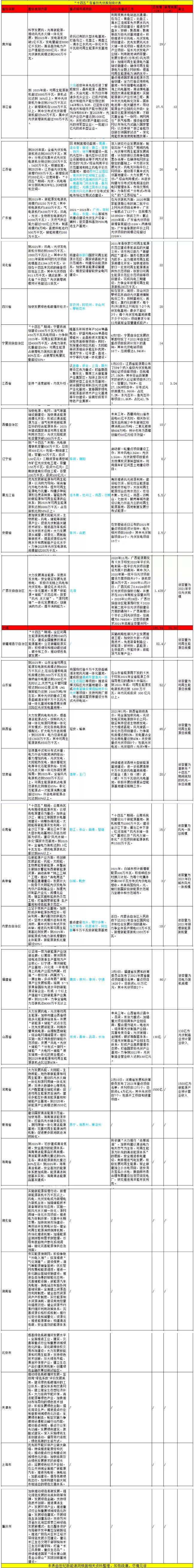 據(jù)世紀新能源網(wǎng)不完全統(tǒng)計,截止已公開數(shù)據(jù),有13個省明確規(guī)劃了光伏建設體量,總容量196.94GW;有4個省明確規(guī)定了風光建設體量,總容量48GW;有2個省明確了“十四五”末期的光伏制造業(yè)收入;青海省雖然沒有規(guī)定具體建設體量,但光伏一直是其重點發(fā)展項目;北京、天津、上海、重慶四個直轄市,則把更多把注意力放在消納方面。