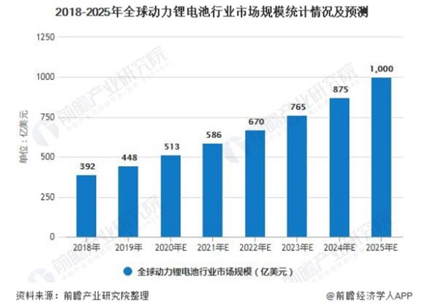 根據(jù)前瞻產(chǎn)業(yè)研究院統(tǒng)計數(shù)據(jù)顯示,當(dāng)前全球動力鋰電池行業(yè)市場規(guī)模約在586億美元,而國際市場研究機(jī)構(gòu)Adroit Market Research在報告中認(rèn)為,全球鋰電市場將以14.3%的復(fù)合年增長率增長,預(yù)計到2025年規(guī)模將超過1000億美元。兩位數(shù)的復(fù)合年增長率,意味著動力鋰電行業(yè)是一個極具發(fā)展前景的藍(lán)海市場。這就給了寧德時代萬億市值提供了充足的發(fā)展空間。