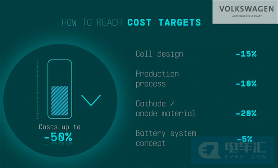 根據(jù)此前大眾透露信息,大眾的目標(biāo)是在2025年之前將電芯成本控制在100美元/kWh以內(nèi)。