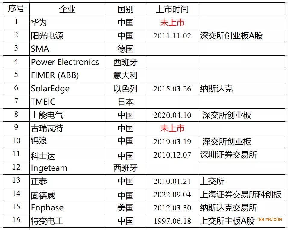 根據(jù)中國光伏行業(yè)協(xié)會的統(tǒng)計數(shù)據(jù),2019年全球銷量前16的逆變器企業(yè),只有2家非上市公司,而行業(yè)龍頭——華為,就是其中的一家。如下圖所示。