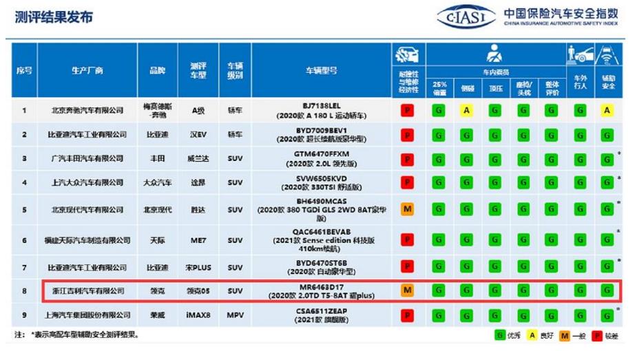 (領(lǐng)克05在C-IASI測(cè)試7項(xiàng)G(優(yōu)秀)高光表現(xiàn))
