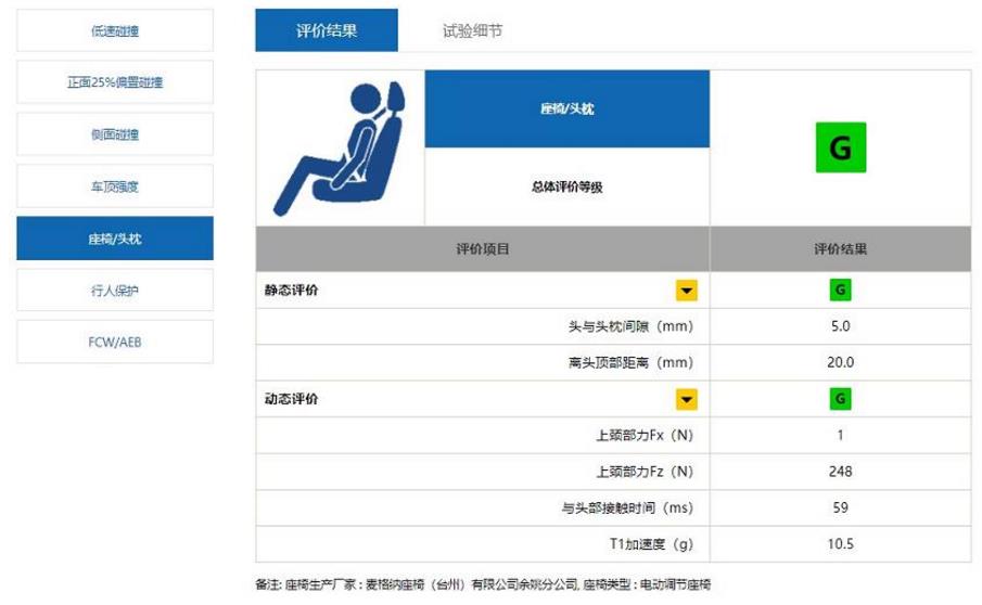 (領(lǐng)克05座椅/頭枕測(cè)試成績(jī))