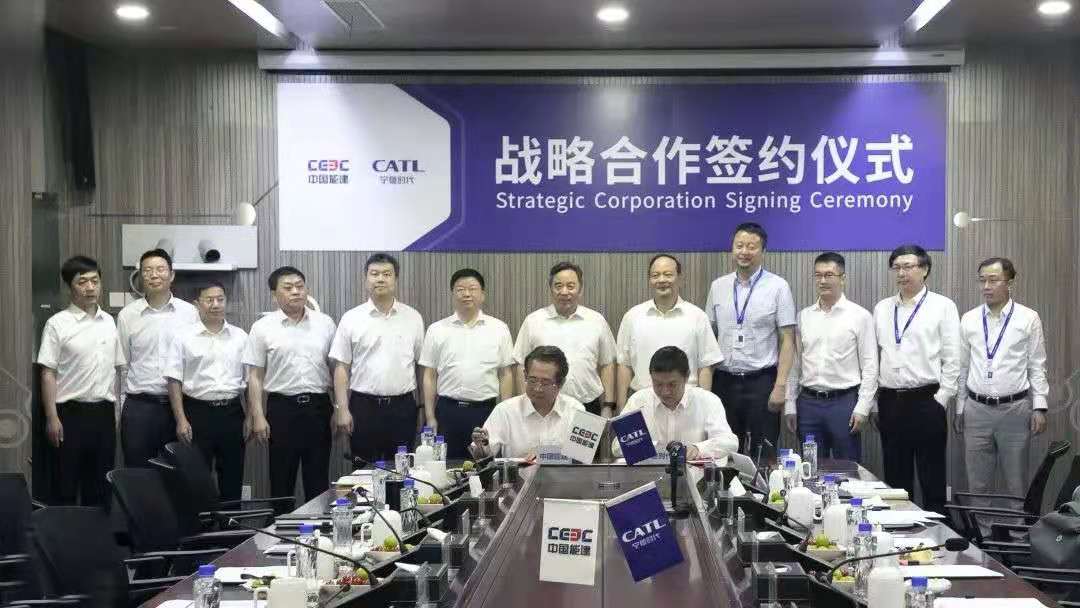 6月15日下午,中國(guó)能源建設(shè)股份有限公司(以下簡(jiǎn)稱“中國(guó)能建”)與寧德時(shí)代新能源科技股份有限公司(以下簡(jiǎn)稱“寧德時(shí)代”)在福建寧德簽訂戰(zhàn)略合作協(xié)議。寧德時(shí)代高級(jí)副總裁、首席客戶官譚立斌,中國(guó)能建黨委常委、副總經(jīng)理吳云分別代表雙方在合作協(xié)議書上簽字。寧德時(shí)代董事長(zhǎng)曾毓群與中國(guó)能建黨委書記、董事長(zhǎng)宋海良見證簽約。