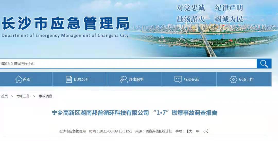 6月9日,長(zhǎng)沙市應(yīng)急管理局對(duì)外公布《寧鄉(xiāng)高新區(qū)湖南邦普循環(huán)科技有限公司 “1·7”燃爆事故調(diào)查報(bào)告》,公布了這起事故的調(diào)查結(jié)果。