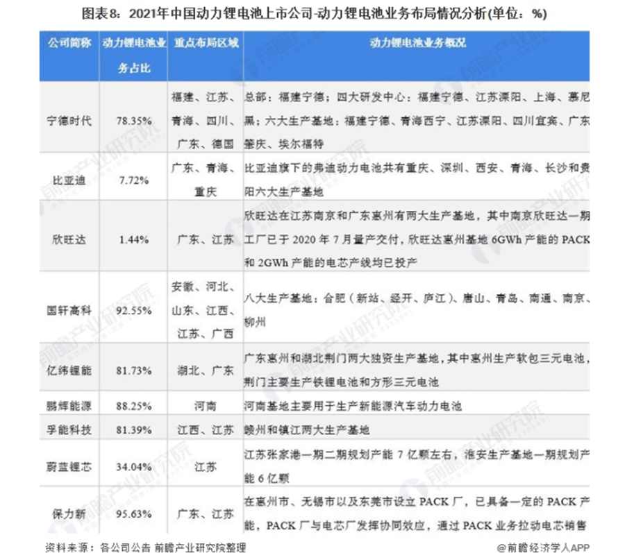 動力鋰電池行業(yè)上市公司業(yè)務(wù)布局對比