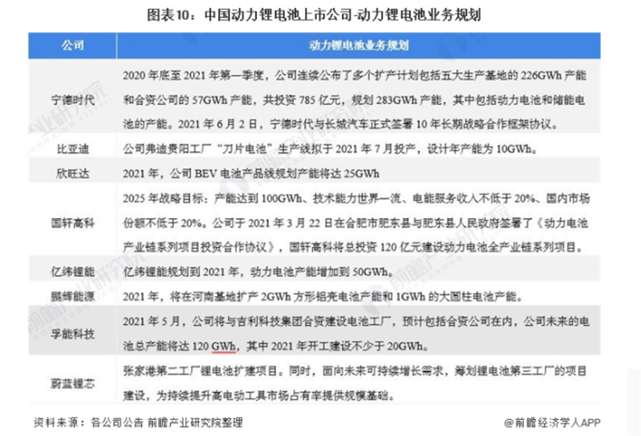 動力鋰電池行業(yè)上市公司動力鋰電池業(yè)務(wù)規(guī)劃對比