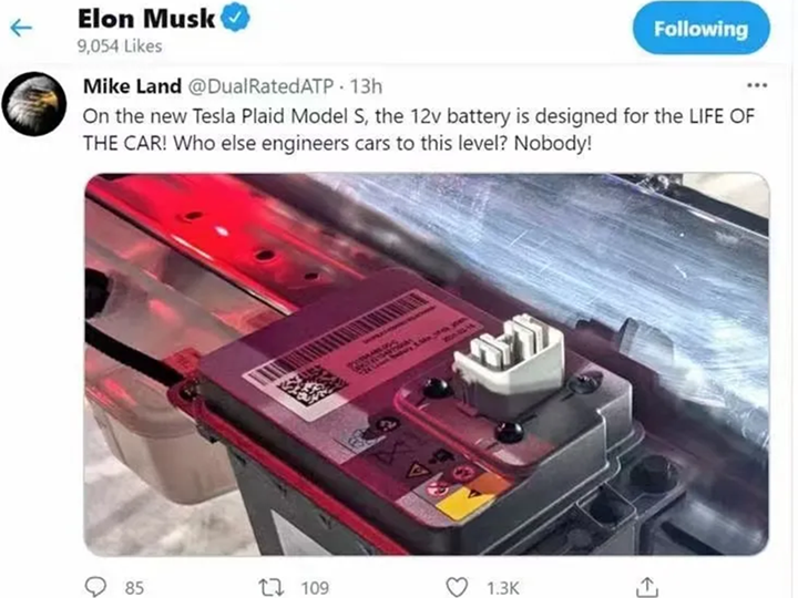 至于Model S Plaid搭載的新鋰電池的壽命幾何,目前沒有結(jié)論,理論上不會短。按照文章開頭Mike Land的說法——與汽車同壽命,而且這一說法得到了馬斯克的點贊,說明在壽命上肯定有驚喜。