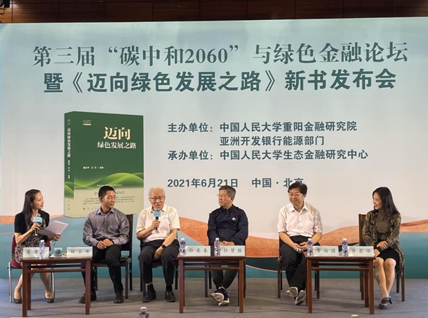 繼第一屆、第二屆“碳中和2060”與綠色金融論壇后,2021年6月21日,中國人民大學(xué)重陽金融研究院(人大重陽)、亞洲開發(fā)銀行能源部門主辦,中國人民大學(xué)生態(tài)金融研究中心承辦的第三屆“碳中和2060”與綠色金融論壇在中國人民大學(xué)隆重召開。會(huì)上發(fā)布了由亞洲開發(fā)銀行能源部與人大重陽共同策劃完成的《邁向綠色發(fā)展之路》圖書。近30萬觀眾在線上參與了會(huì)議。