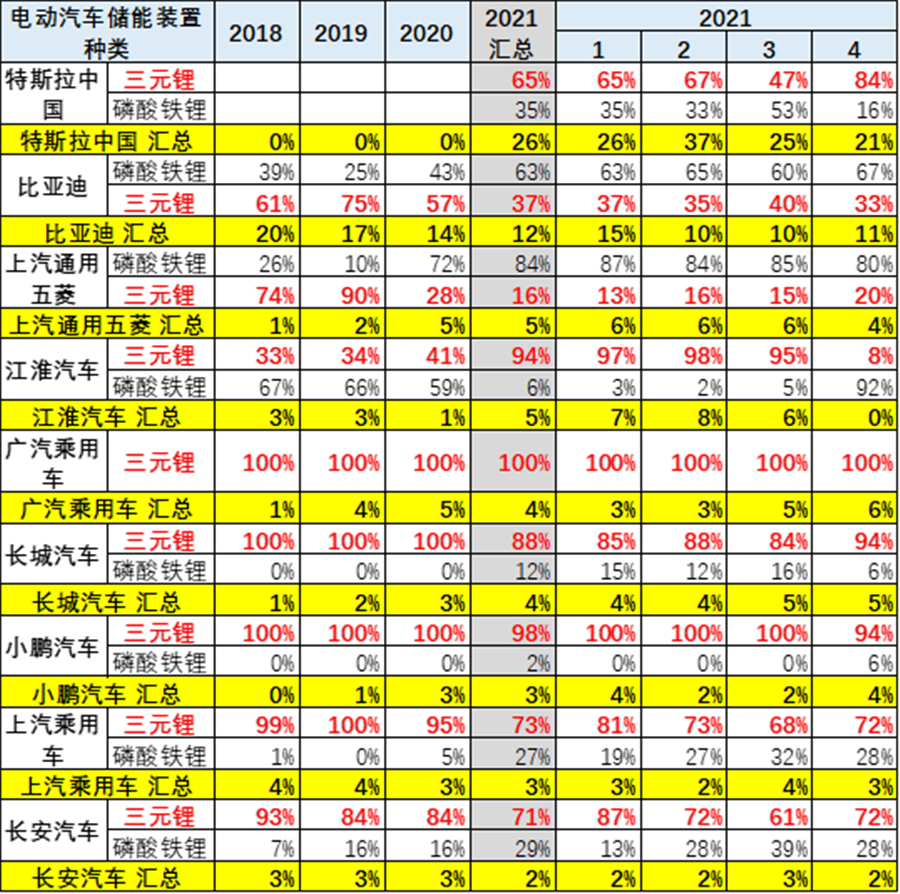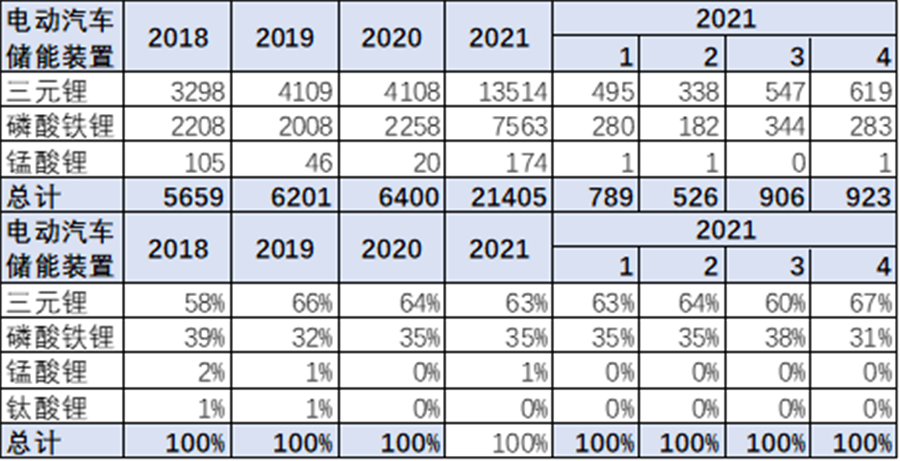 乘用車的三元鋰電的需求暫時回落,21年達到整體汽車電池需求的59%。4月的磷酸鐵鋰需求明顯回升,達到42%。