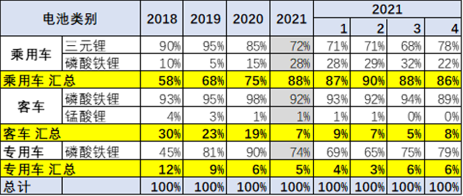 21年的客車產(chǎn)品的磷酸鐵鋰占比92%,仍是相對保守。