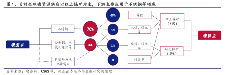 而三元鋰電池所需要的鎳,自然是一級鎳,而一級鎳的來源只有兩種:硫化鎳礦或者是采用濕法冶煉的紅土鎳礦。