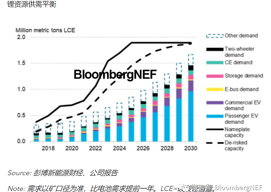 到2030年,電池級鋰化學(xué)品應(yīng)供應(yīng)充足,可以滿足電池需求,但鋰金屬總需求(170萬公噸碳酸鋰當(dāng)量)可能面臨供應(yīng)缺口。彭博新能源財經(jīng)預(yù)計,鋰市場供應(yīng)將在未來2年以及2030之前的最后幾年中收緊。材料回收有助于平衡市場供需。