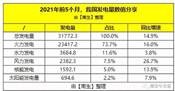 按照國(guó)家統(tǒng)計(jì)局公開的信息,今年前5個(gè)月我國(guó)全社會(huì)的總發(fā)電量為31772.3億千瓦時(shí),同比增長(zhǎng)14.9%。其中,5月當(dāng)月的發(fā)電量同比增長(zhǎng)7.9%,4月份的發(fā)電量同比增長(zhǎng)11%,3月份的發(fā)電量同比增長(zhǎng)17.4%……