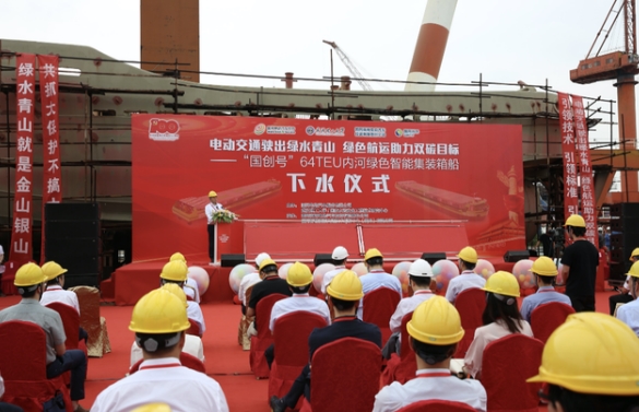 2021年6月26日,由國(guó)網(wǎng)電動(dòng)汽車服務(wù)有限公司投資、國(guó)網(wǎng)智慧能源交通技術(shù)中心牽頭組織研發(fā)建造的國(guó)內(nèi)首艘64TEU內(nèi)河綠色智能集裝箱船“國(guó)創(chuàng)號(hào)”在江蘇泰州正式下水。國(guó)網(wǎng)電動(dòng)汽車服務(wù)有限公司董事長(zhǎng)全生明,中國(guó)工程院院士、武漢理工大學(xué)首席教授嚴(yán)新平,江蘇海事局局長(zhǎng)朱汝明,武漢理工大學(xué)副校長(zhǎng)吳超仲等出席下水儀式。國(guó)網(wǎng)電動(dòng)汽車公司領(lǐng)導(dǎo)、國(guó)創(chuàng)中心董事長(zhǎng)賈俊國(guó)主持儀式。
