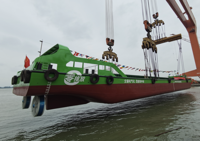此次下水的64TEU內(nèi)河綠色智能集裝箱船是2018年度國(guó)家重點(diǎn)研發(fā)計(jì)劃“綜合交通運(yùn)輸與智能交通”專項(xiàng)示范項(xiàng)目,項(xiàng)目歷經(jīng)三年時(shí)間,集成了直流電力推進(jìn)系統(tǒng)、集裝箱式移動(dòng)電源、智能充換電系統(tǒng)、船岸協(xié)同平臺(tái)、無軸輪緣推進(jìn)系統(tǒng)、智能船舶輔助駕駛系統(tǒng)等眾多創(chuàng)新技術(shù),是我國(guó)首艘自主設(shè)計(jì)、研發(fā)、建造,擁有完全自主知識(shí)產(chǎn)權(quán)的內(nèi)河純電池動(dòng)力集裝箱船。該船總長(zhǎng)64.8米、型寬12.5米、型深3.4米,總噸位994噸。未來將在安吉上港碼頭至上海外高橋碼頭270多公里的內(nèi)河航線上開展商業(yè)化運(yùn)營(yíng),每船每年可減少燃油消耗13萬升,減少二氧化碳排放340噸,具備綠色、環(huán)保、科技、創(chuàng)新等突出特點(diǎn),并在我國(guó)水運(yùn)交通領(lǐng)域創(chuàng)下多項(xiàng)第一:第一艘內(nèi)河純電池動(dòng)力綠色智能集裝箱船、第一艘采用船電分離、船岸協(xié)同智能換電的電動(dòng)船舶、第一艘采用智能輔助駕駛的內(nèi)河集裝箱運(yùn)輸船舶、第一艘采用無軸輪緣推進(jìn)系統(tǒng)的內(nèi)河船舶、第一艘滿足綠色船舶三級(jí)認(rèn)證標(biāo)準(zhǔn)的內(nèi)河船舶。