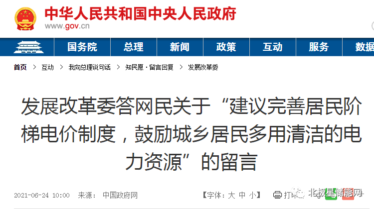 發(fā)展改革委答網(wǎng)民關(guān)于“建議完善居民階梯電價(jià)制度,鼓勵(lì)城鄉(xiāng)居民多用清潔的電力資源”的留言