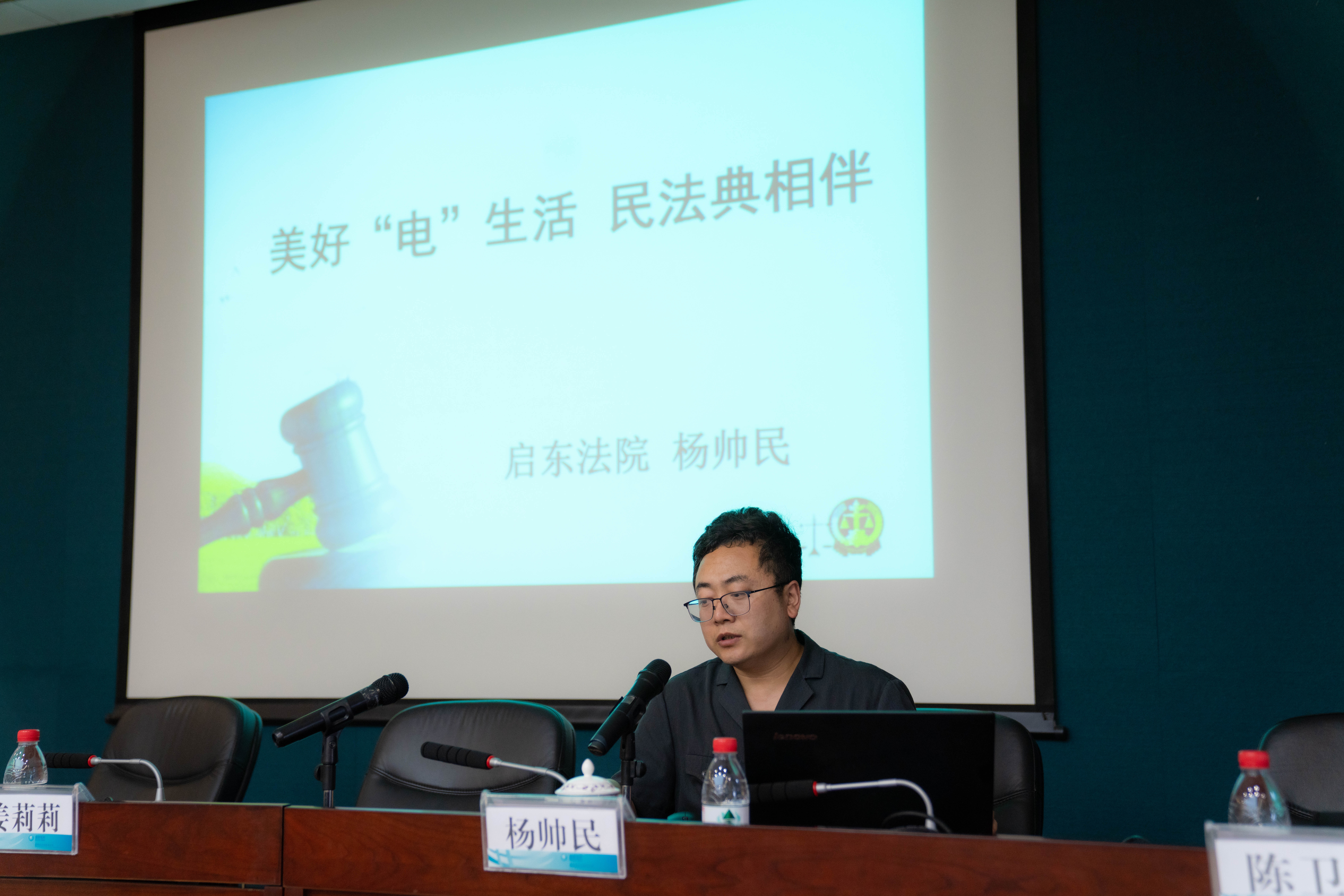 贈(zèng)書后,啟東市人民法院民一庭副庭長(zhǎng)楊帥民作了以《美好“電”生活 民法典相伴》為題知識(shí)講座。楊法官解析了近期社會(huì)熱點(diǎn)的一些案例,又重點(diǎn)講述國(guó)企員工涉及經(jīng)濟(jì)糾紛、勞動(dòng)關(guān)系、工傷、婚姻家庭、涉電經(jīng)營(yíng)等法律風(fēng)險(xiǎn),為我們作了一場(chǎng)生動(dòng)的普法教育課。